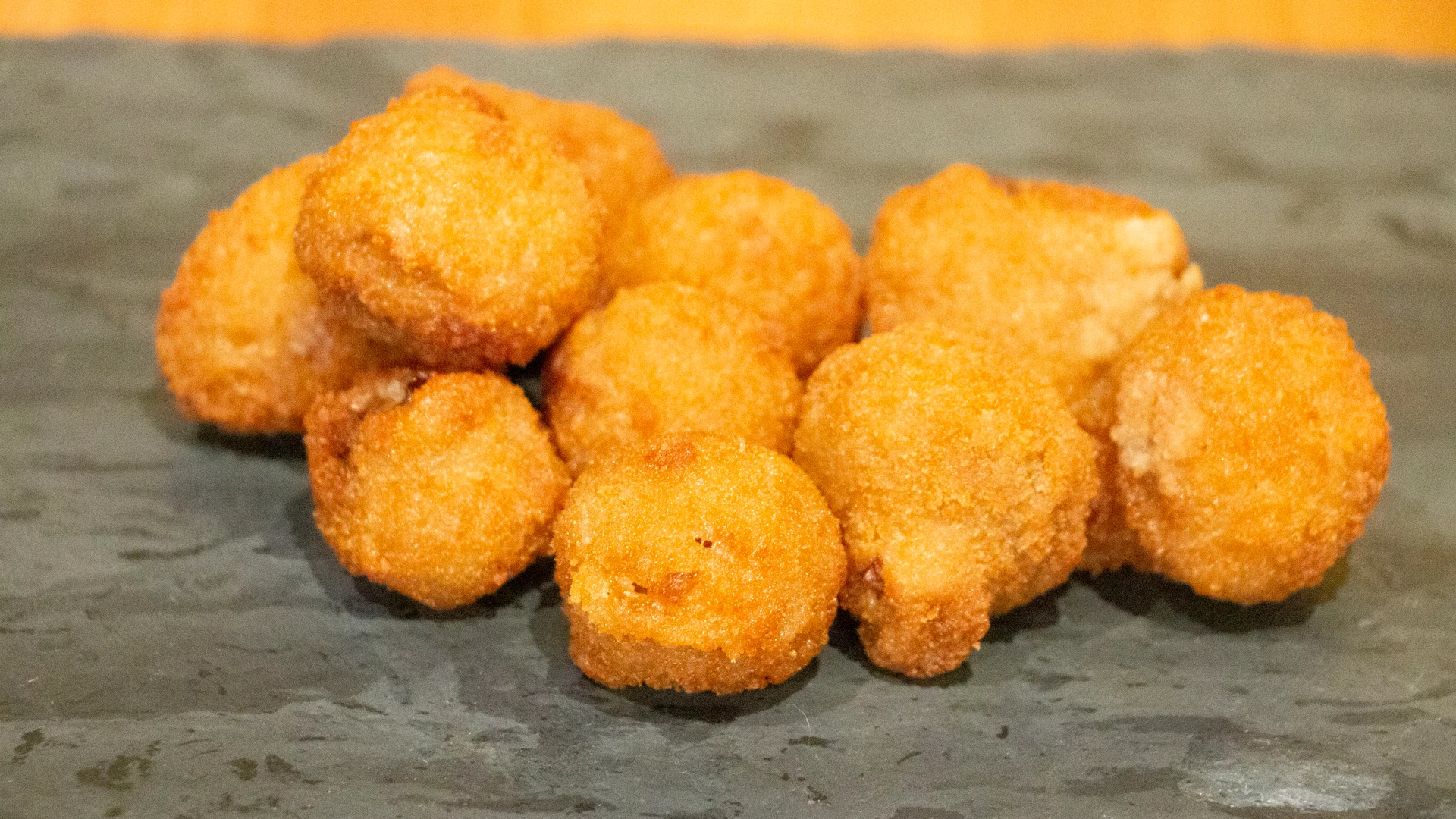 Fried baked potato buds with cheddar cheese & jalapeño bits, served with sour cream & ranch