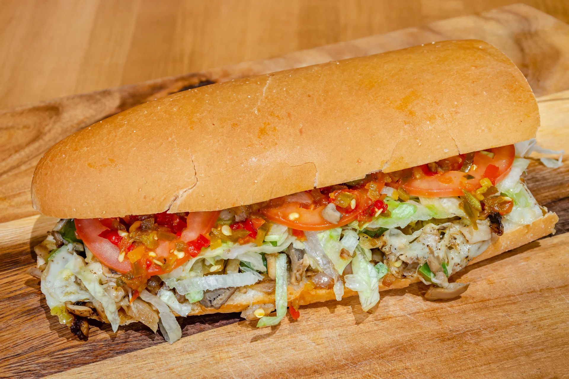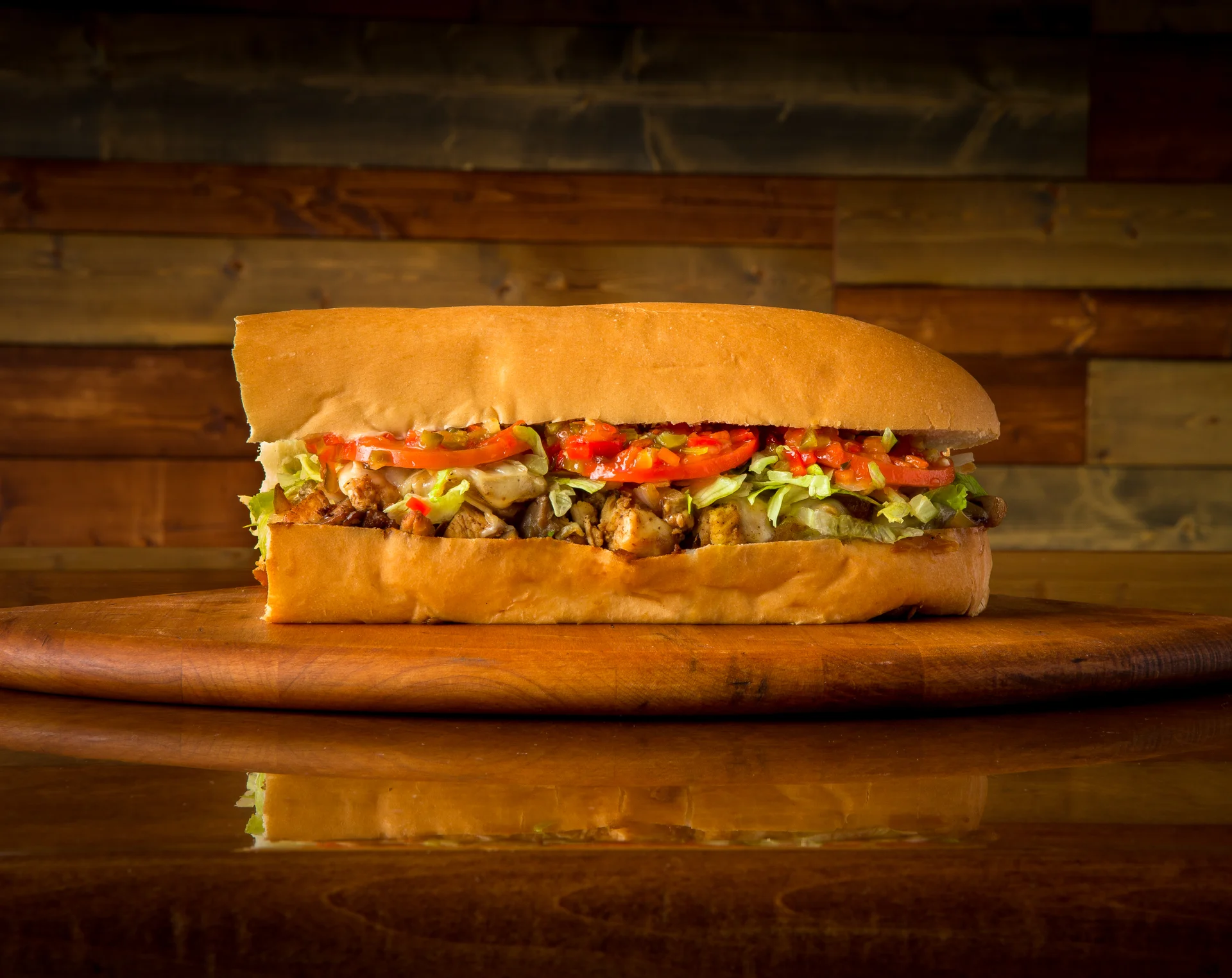 Grilled chicken, provolone & swiss cheese, onions, mushrooms, & "The works". Comes with a side of our House Chips.