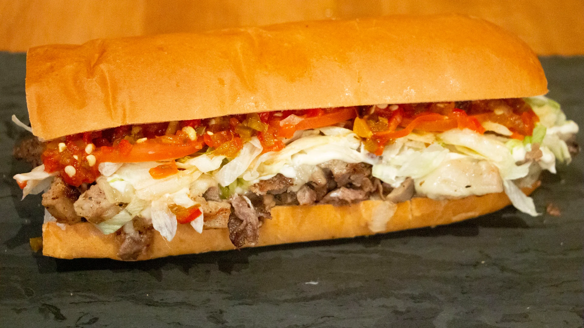 Homemade oil & vinegar sauce, cheese, grilled steak, onions, mushrooms & pepper relish