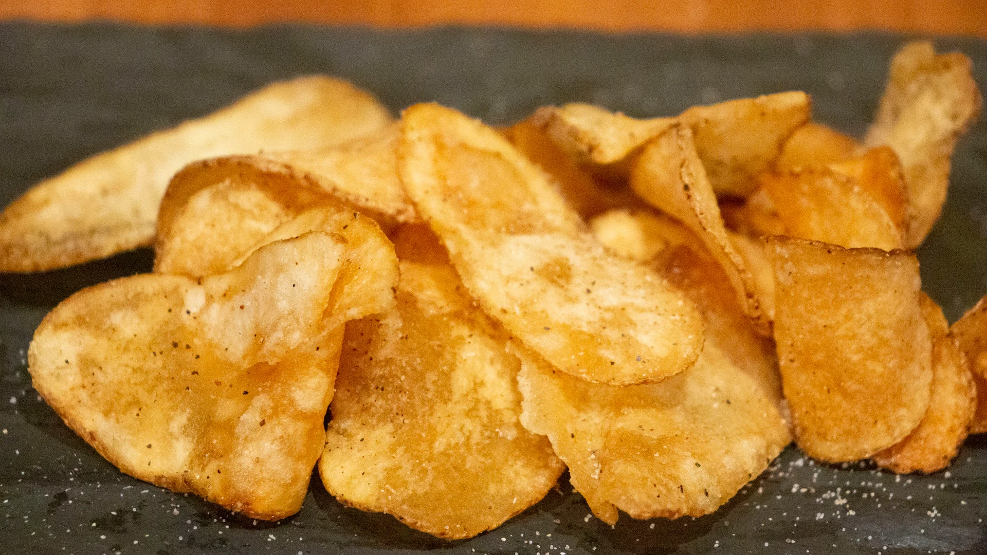 Homemade potato chips with our house seasoning. Choice of 2 sauces: Nacho Cheese, Ranch, Pepper Relish, Bbq, or House Chipotle Pepper Relish