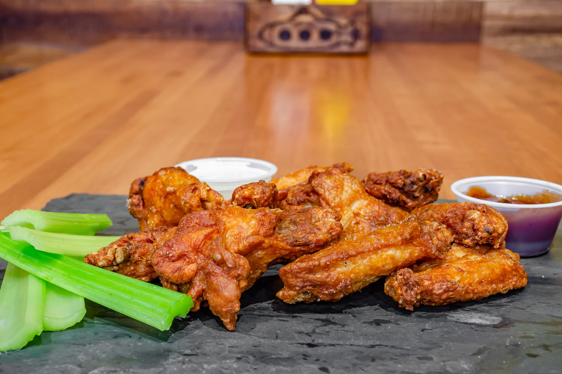 10 traditional or 1 lb of boneless wings. Served with one sauce of your choice. Additional dipping sauces available (+$.75 each): Hot, Bbq, Spicy Bbq, House Chipotle Pepper Relish, Ranch, Blue Cheese, Honey Mustard & Celery