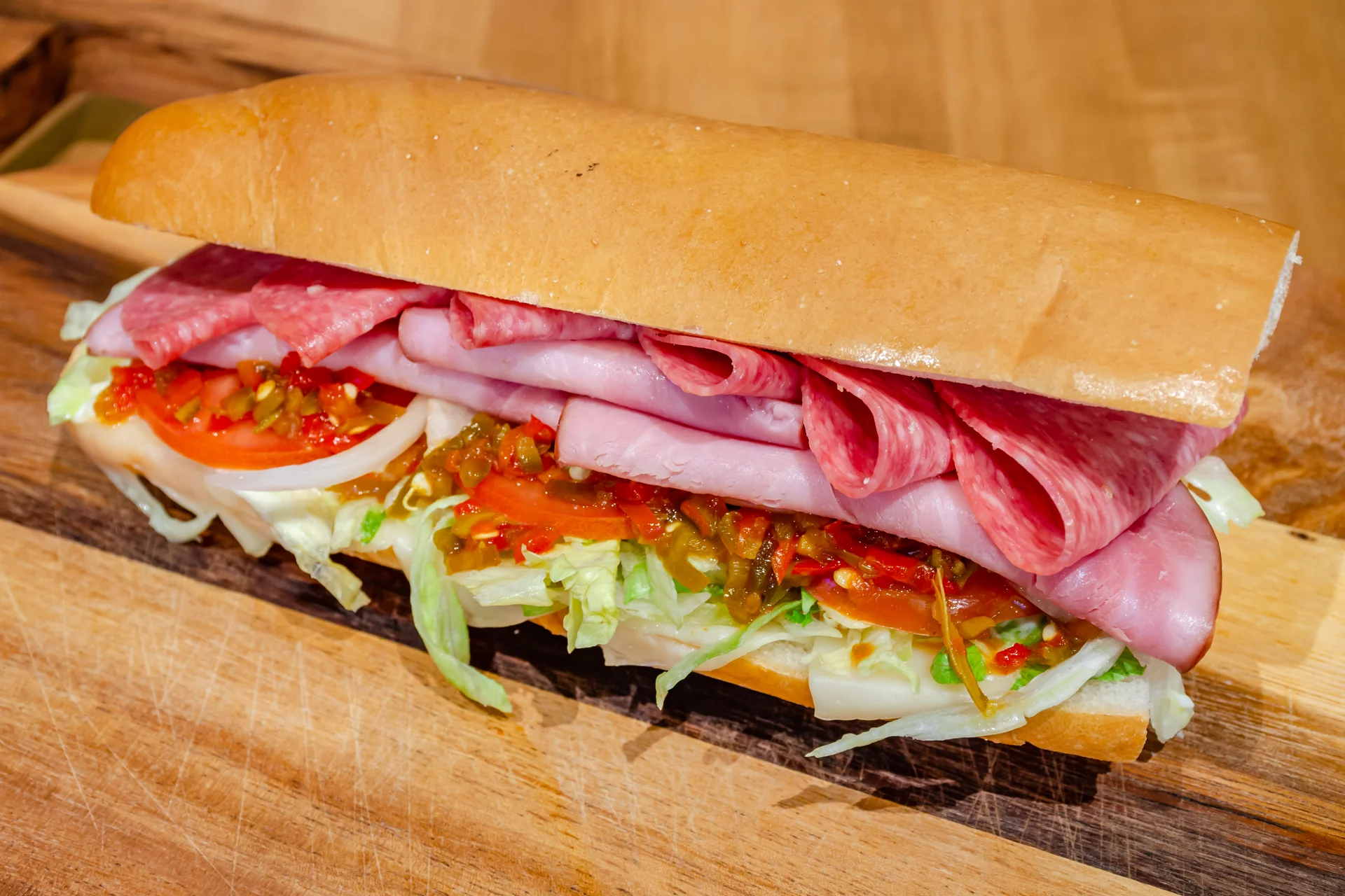 Hard salami, oven baked ham, provolone cheese, & the works". Comes with a side of our House Chips.