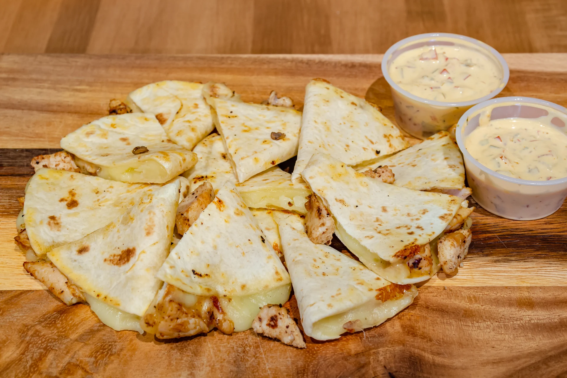 Grilled chicken and cheese quesadilla served with our house chipotle pepper relish. Perfect for sharing!